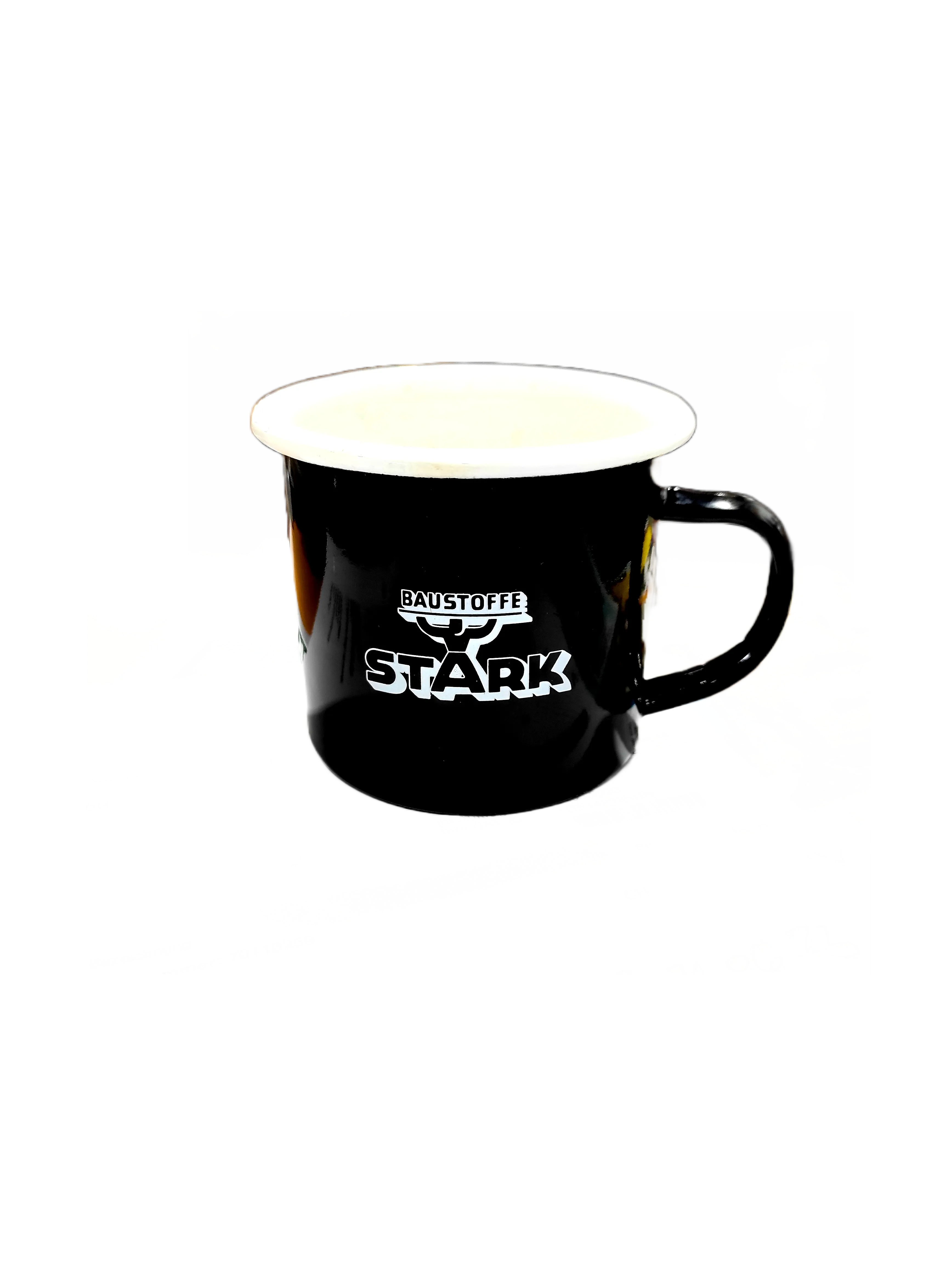 Emaille-Becher "Retro Cup" 350ml STARK schwarze Tasse mit Henkel und Retro-Logo