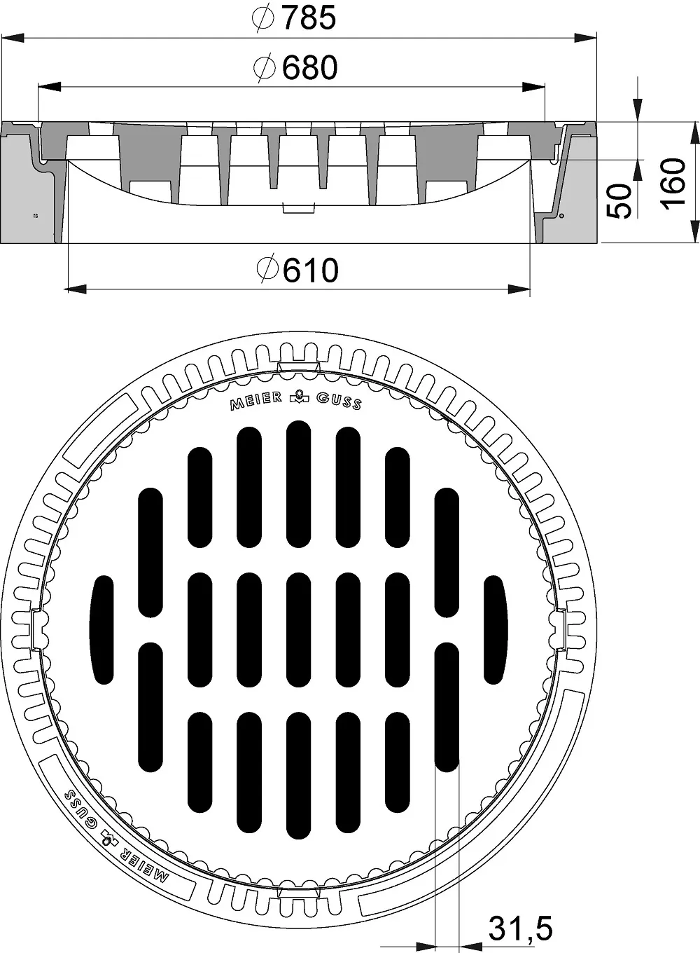 BETON-GUSS-AUFSATZ KL.C250 MULDENFORM D=625 MM RUND (GUSS-EINLAUFROST) 203230