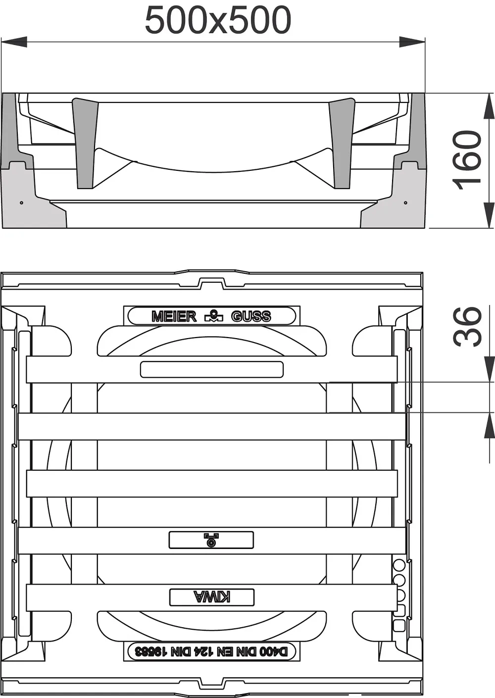BETON-GUSS-AUFSATZ KL.C250 PULT 500X500 MM, SW 36 MM, MIT EINLAGE 203351