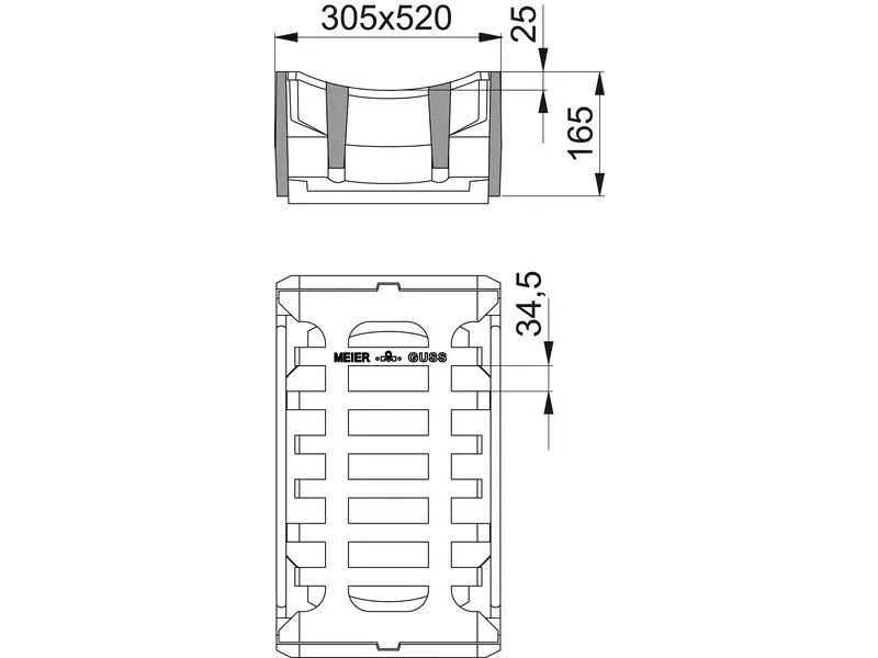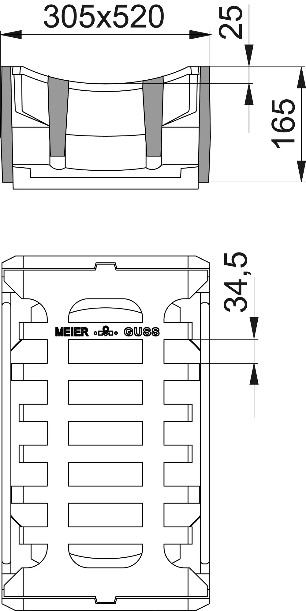ELCORD-GUSS-AUFS. KL.D400 RINNE 500X300 MM, SW 34,5 MM, MIT EINLAGE 204661